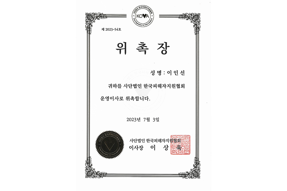 2010³â ¹ý¹«ºÎ·ÎºÎÅÍ Çã°¡ ¹ÞÀº ¼ø¼ö ¹Î°£ ÇÇÇØÀÚ Áö¿ø ´Üü»ç´Ü¹ýÀÎ Çѱ¹ÇÇÇØÀÚÁö¿øÇùȸÀÇ ¿î¿µ ÀÌ»ç·Î À§Ã˵Ǿú½À´Ï´Ù.