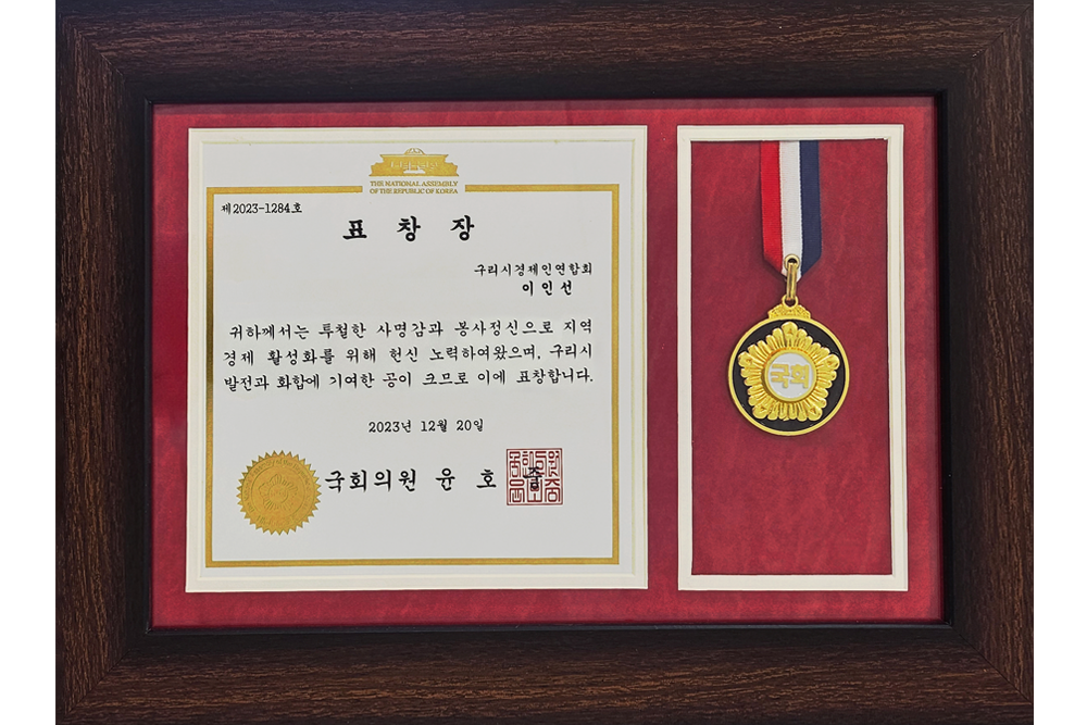 2023³â 12¿ù 20Àϱ¸¸®½Ã°æÁ¦Àο¬ÇÕȸ ´ëÇ¥·Î¼ ±¹È¸ÀÇ¿ø»óÀ» ¼ö»óÇÏ°Ô µÇ¾ú½À´Ï´Ù.ÅõöÇÑ »ç¸í°¨°ú ºÀ»çÁ¤½ÅÀ¸·Î Áö¿ª°æÁ¦ Ȱ¼ºÈ¸¦ À§ÇØ ´õ¿í Çå½ÅÇÏ°í ³ë·ÂÇϸç,±¸¸®½Ã ¹ßÀü°ú ÈÇÕ¿¡ ´õ Å« °øÀ¸·Î º¸´äÇϰڽÀ´Ï´Ù..